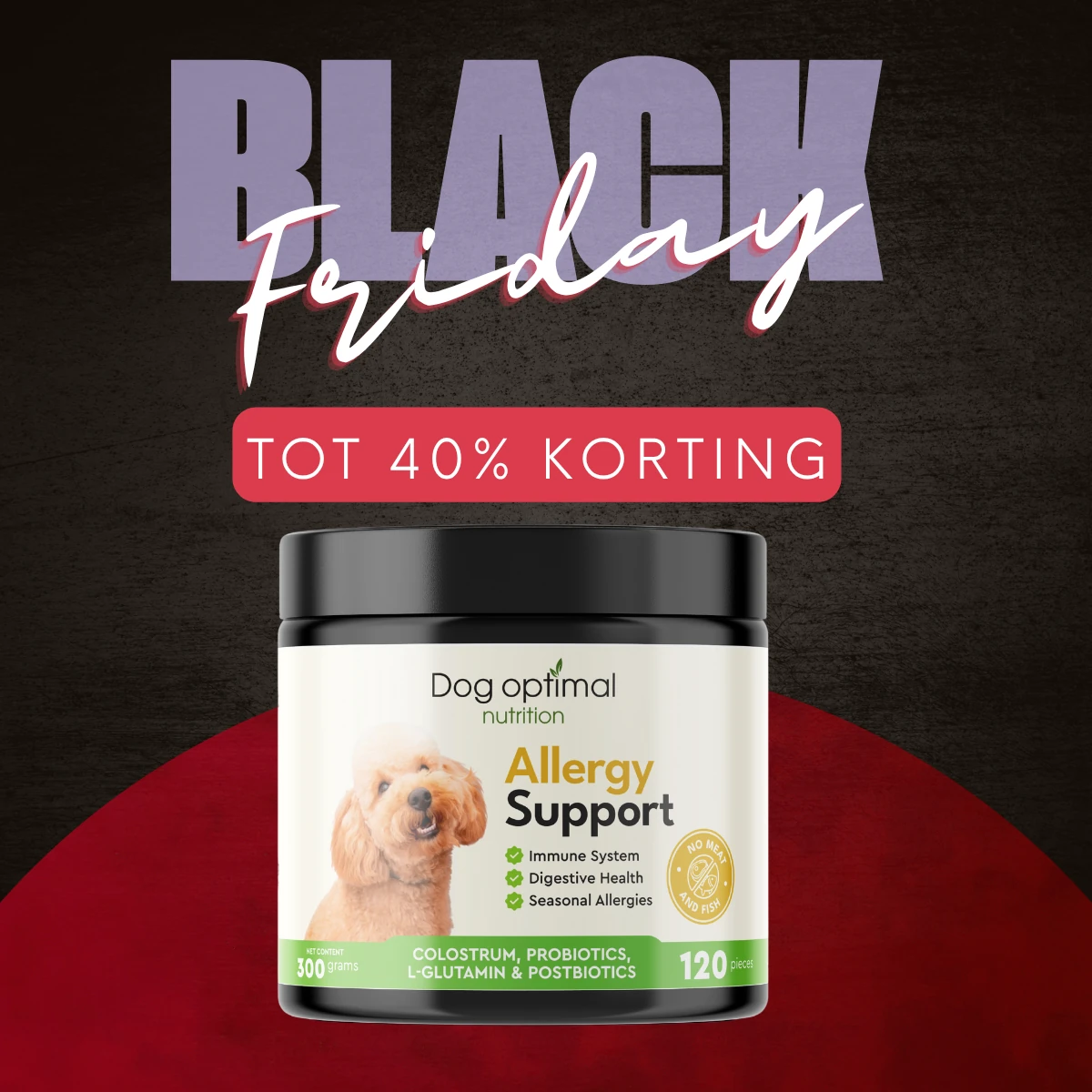 Laat allergieën het welzijn van je hond niet beïnvloeden. Overmatige jeuk, vachtverlies en geïrriteerde ogen zijn slechts enkele tekenen van reacties op omgevingsfactoren. Met Dog Optimal’s Allergy Support supplement kun je ondersteuning bieden voor langdurig comfort. Of het nu gaat om voedselgevoeligheden, seizoensgebonden reacties of bijwerkingen van medicijnen, ons supplement is er om het comfort en welzijn van je viervoeter te ondersteunen. Geef je hond de zorg die hij verdient met Dog Optimal’s Allergy Support supplement.
