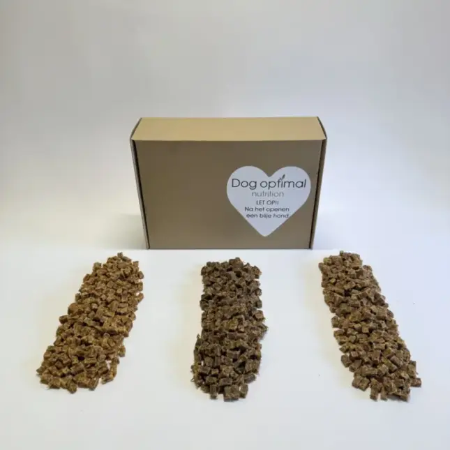 Een smakelijke trainersbox boordevol natuurlijke traktaties voor je hond. Rijk aan eiwitten, zonder kunstmatige toevoegingen. Geschikt voor alle honden, maar bij uitstek voor allergie-gevoelige honden!